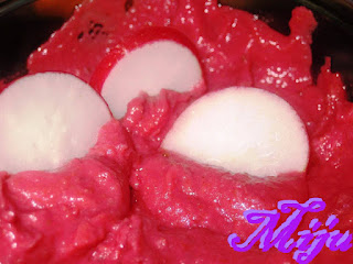 1 remolacha, 5 rabanitos, 1 diente de ajo negro, 1